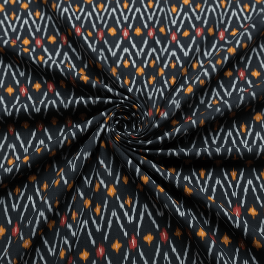 Balck, Yellow & Red Chevron Cotton Handloom Ikat | SKU: IK-570