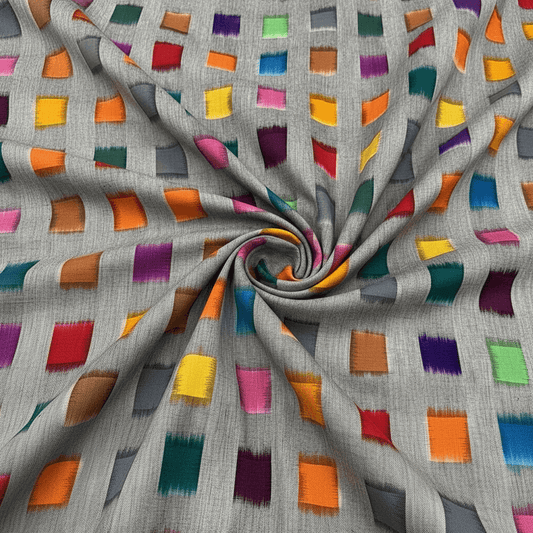 Grey Base Multicolor Square Handwoven Cotton Double Ikat | SKU: IKK-616