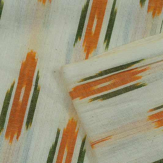 Orange & White Cotton Handwoven Double Ikat | 1 Meter (SKU: IK-583)