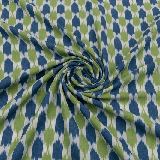 Green & Blue Design Fine Quality Cotton Handloom Ikat | SKU: IK-649