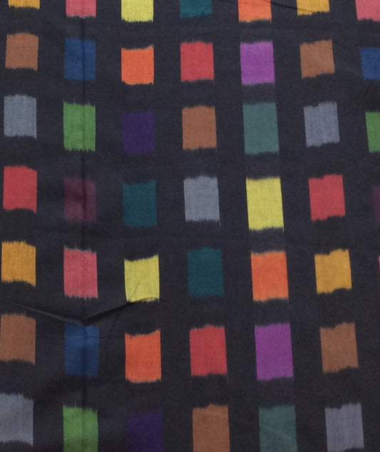 Black Base Multicolor Checks Cotton Handloom Double Ikat | 1 Meter (SKU: IKK-610)