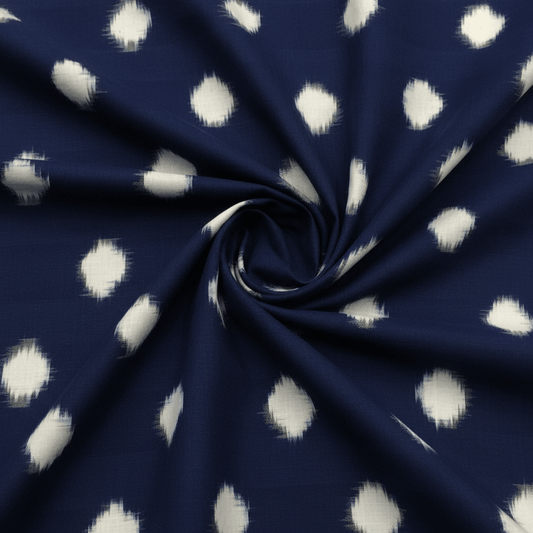 Blue & White Circle Dot Cotton Handloom Ikat | SKU: IK-247