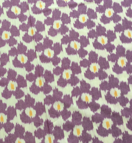 White, Purple Floral Design Cotton Handloom Ikat (SKU: IK-450)
