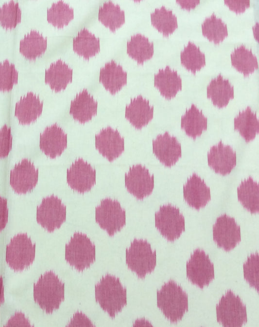 White, Pink Dot Cotton Handloom Ikat (SKU: IKK-595)