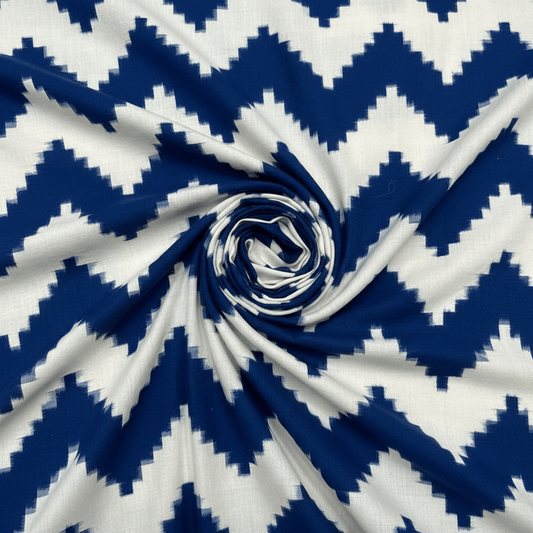 White, Blue Chevron Cotton Handloom Double Ikat | 1 Meter (SKU: IKK-622)