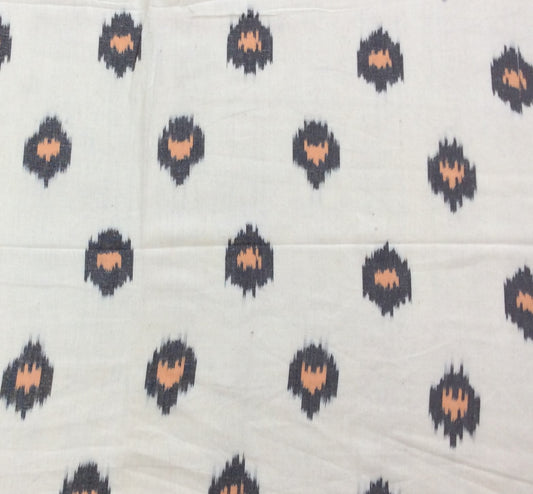 White Base Big Design Handloom Fine Quality Cotton Ikat | 1 Meter (SKU: IKK-630)