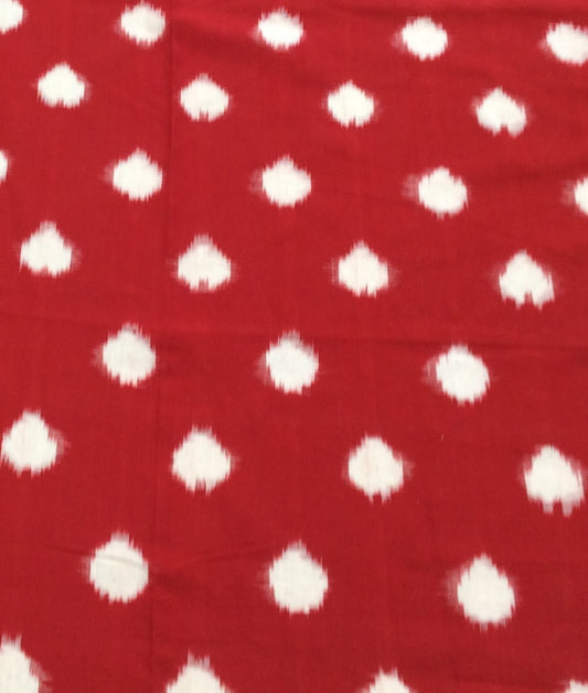 Red & White Dot Cotton Handwoven Double Ikat | 1 Meter (SKU-IKK-615)