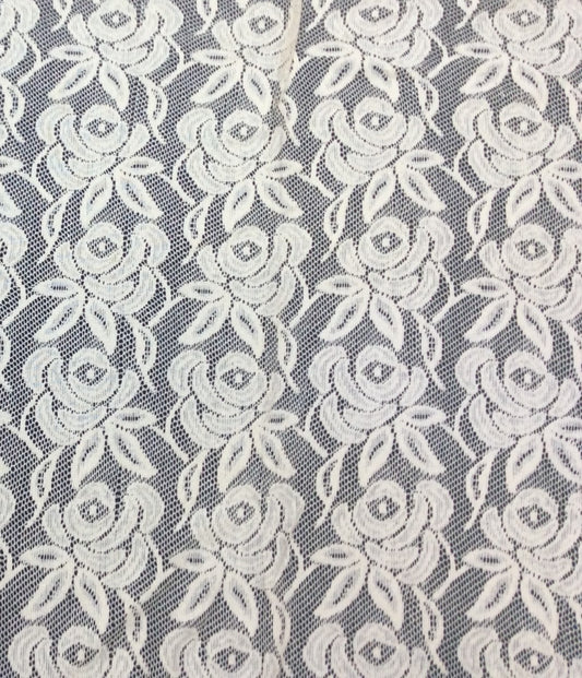 Off White Floral Design Dyeable Cotton Net (SKU: N-154)