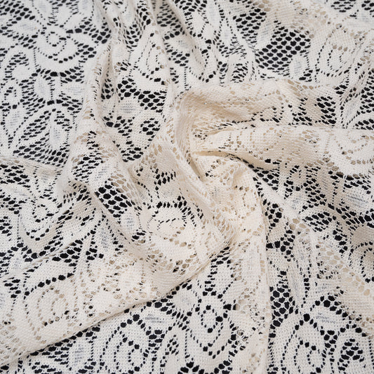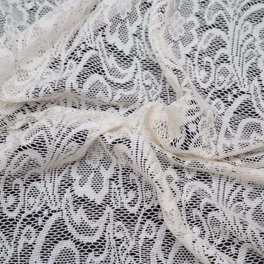 Off White Floral Design Dyeable Cotton Net (SKU: N-181)