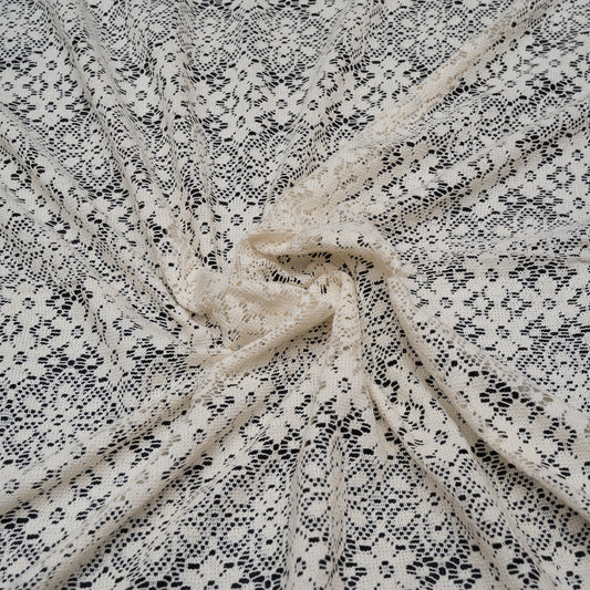 Off White Geometric Design Cotton Dyeable Net Fabric