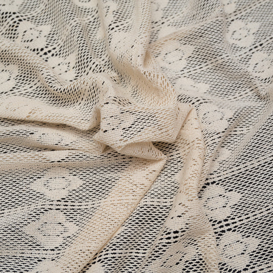 Off White Floral Design Dyeable Cotton Net (SKU: N-104)