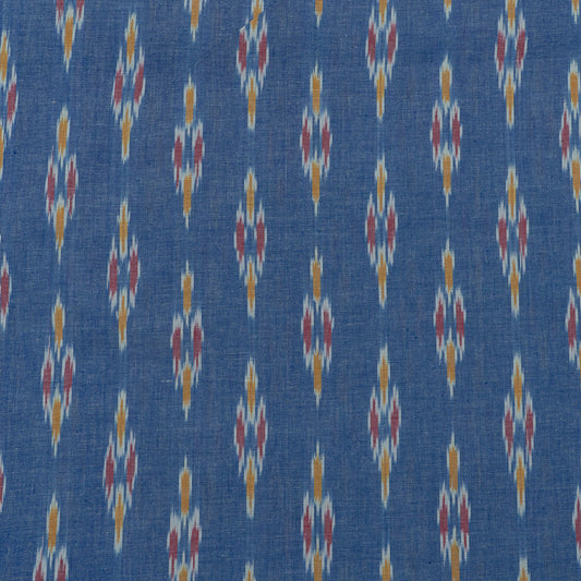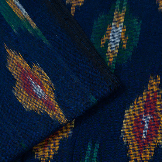 Multi Color Pattern on Blue Base Fine Quality Cotton Handloom Ikat (Sku: IKK-389)