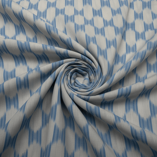White Base Grey & Blue Fine Quality Handloom Cotton Ikat |