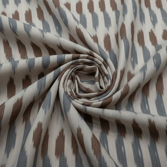 Beige & White Big Pattern Cotton Handloom Ikat | SKU: IK-444