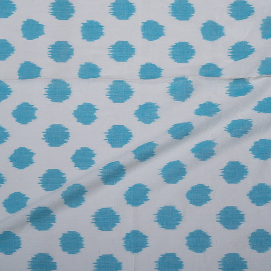 Turqouise Blue & White Fine Quality Circle Dot Cotton Handloom Ikat (Sku: IKK-397)