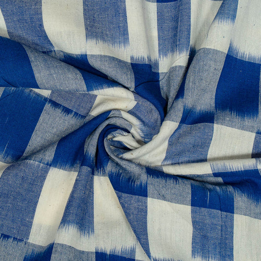 Blue & White Check Fine Cotton Handloom Ikat (SKU: IKK-141)