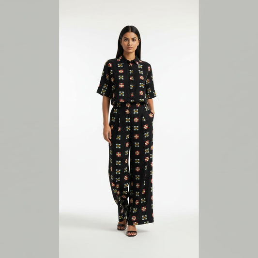 Black Base Multi Color Check Handwoven Cotton Double Ikat (Sku: IKK-479)