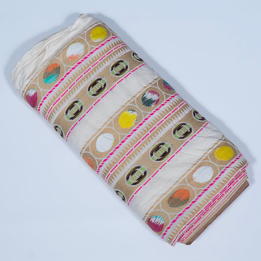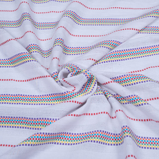 White Base Multicolor Cotton Dobby Fabric (SKU: J-488)