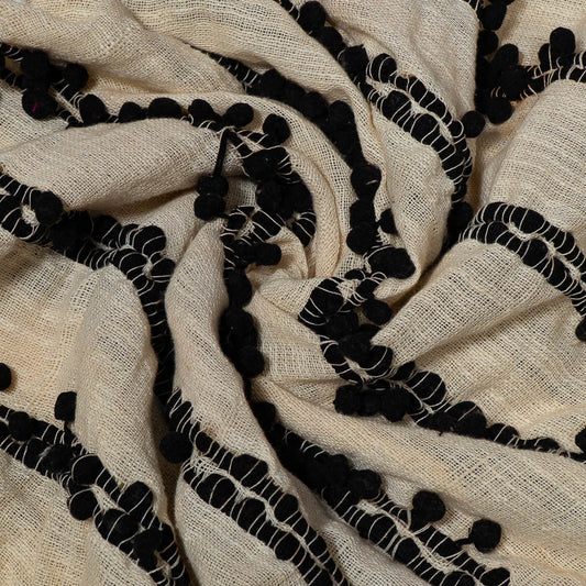 Natural Cotton With Acrylic Pompom Textured Jacquard (SKU: J-558)