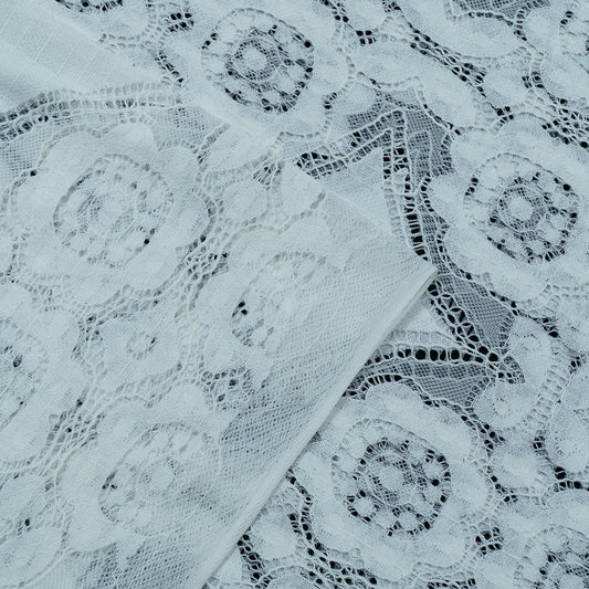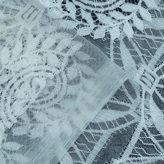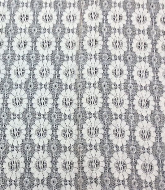 White Floral Design Dyeable Cotton Nylon Net Fabric