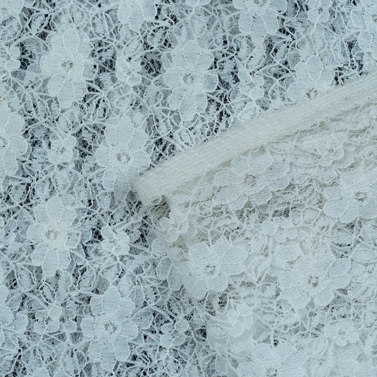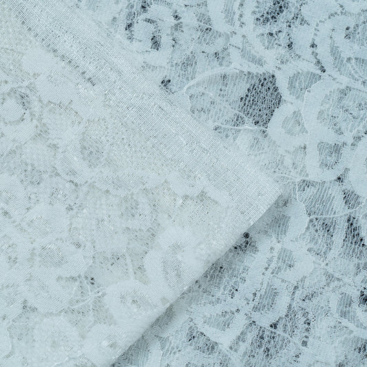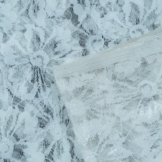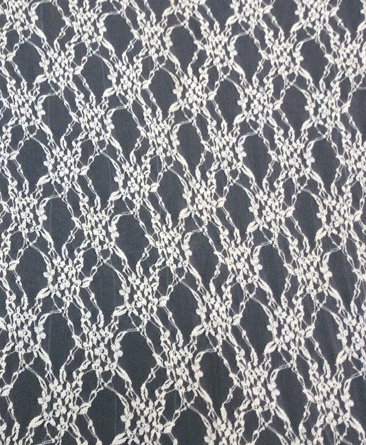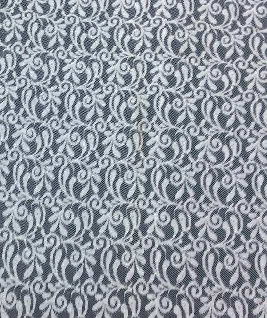 White Floral Design Dyeable Lycra Nylon Net (SKU: N-1)