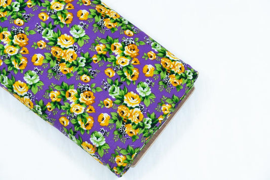 Purple, Green & Yellow Floral Corduroy Thick Cotton Print