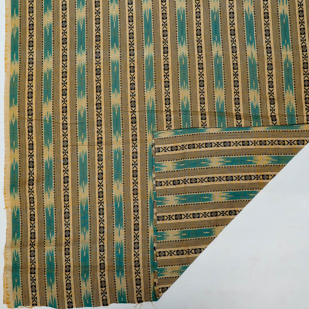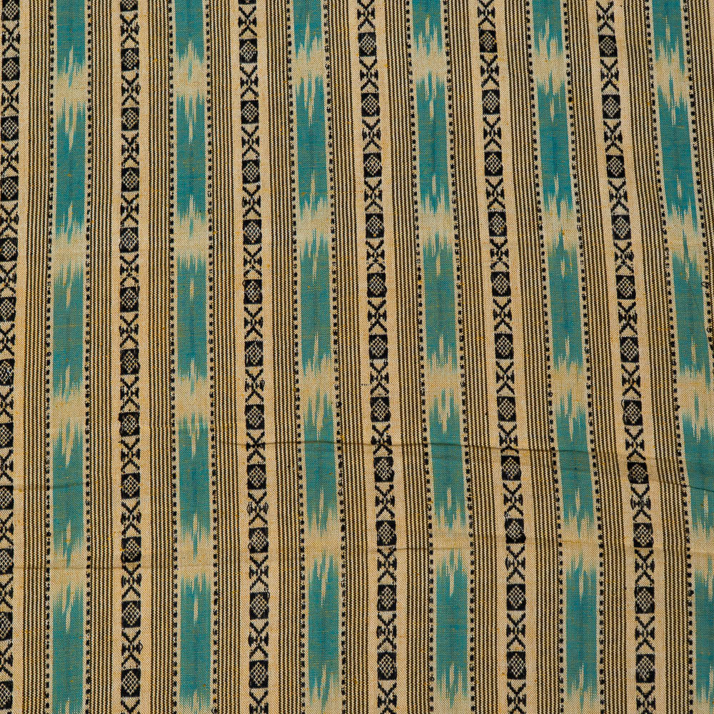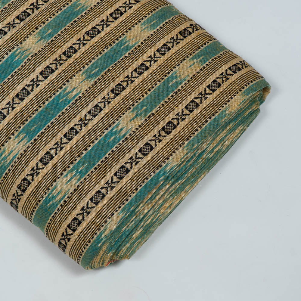 Biege & Turquoise color Cotton Dobby Handloom Ikat (SKU: IK-295)