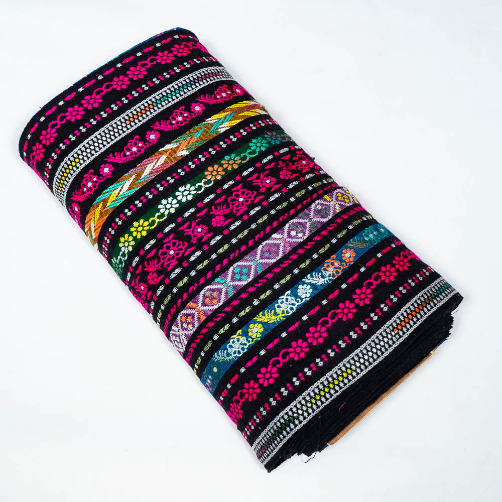 Black base Multicolor Design Cotton Acrylic Jacquard (SKU: J-567)