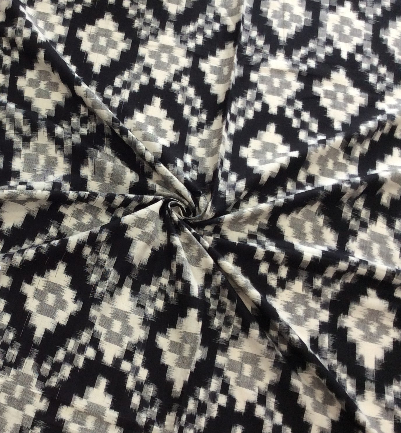 Black & White Fine Quality Cotton Handloom Ikat Fabric (SKU: IKK-482)