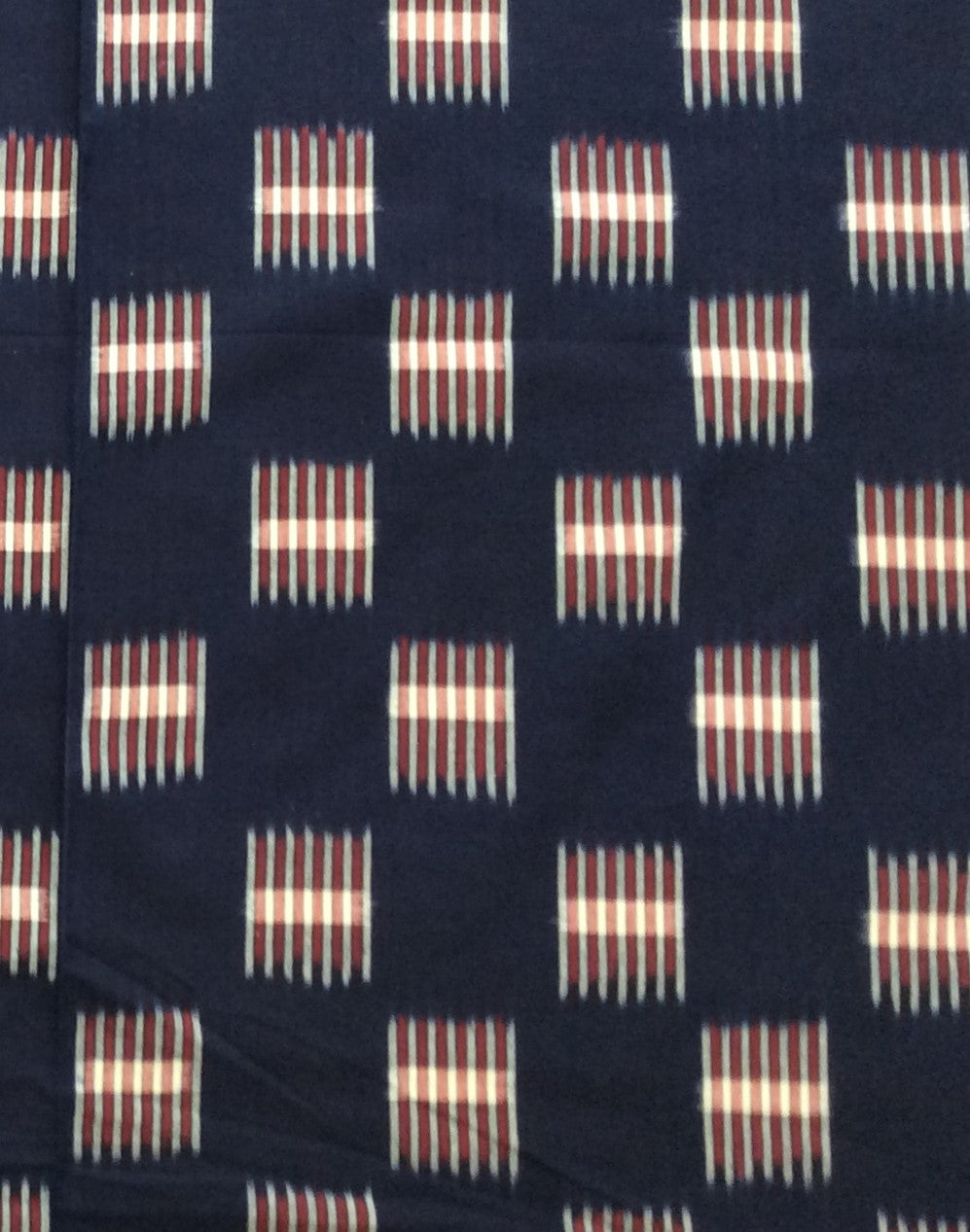 Blue & Red Cotton Handwoven Double Ikat (Width: 44 inches or 112 cm)
