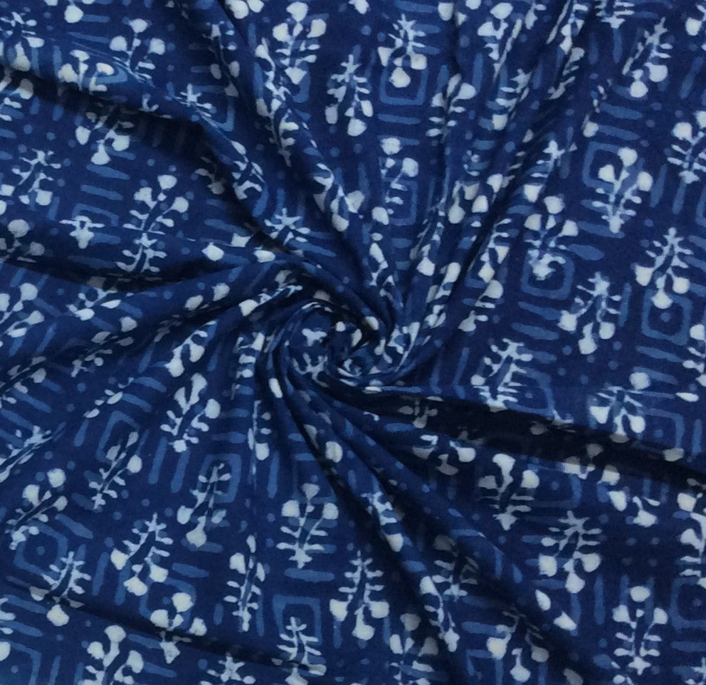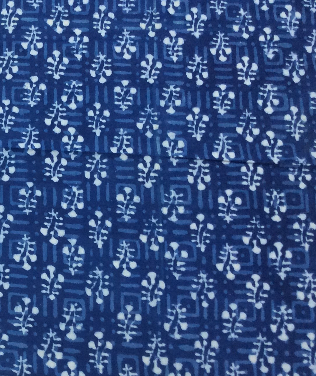 Blue color Cotton Indigo Hand Block Print Fabric (SKU: B-133)