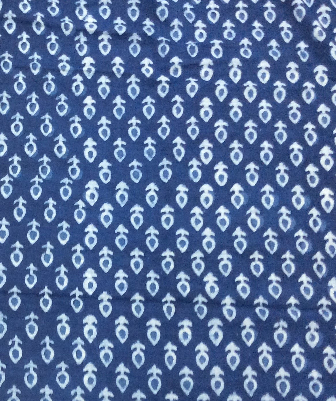 Blue color Cotton Indigo Hand Block Print Fabric (SKU: B-138)