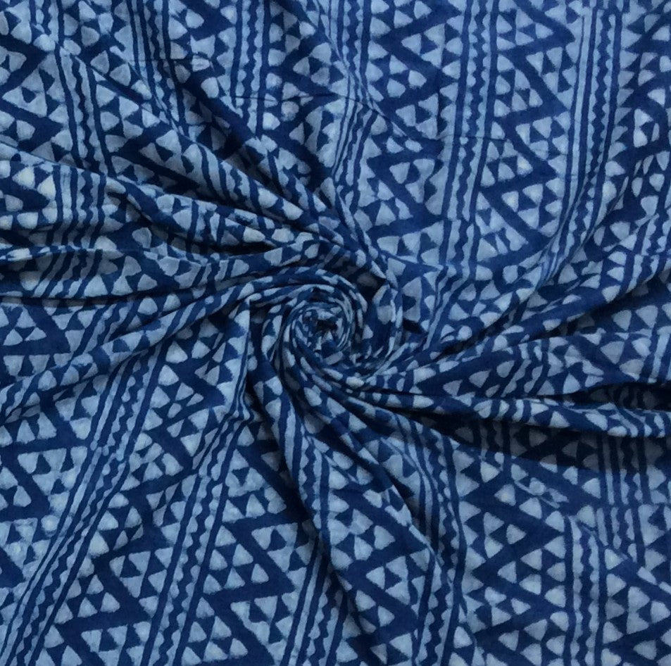 Blue color Cotton Indigo Hand Block Print Fabric (SKU: B-140)