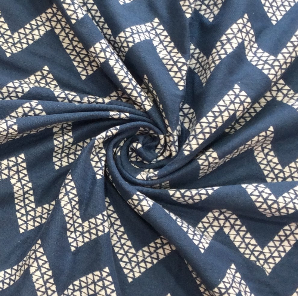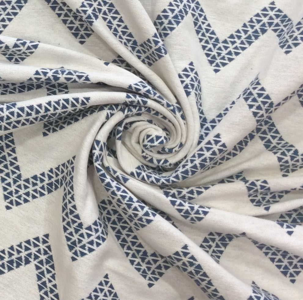 Blue, White Chevron Cotton Double Cloth Jacquard (SKU: JDD-481)