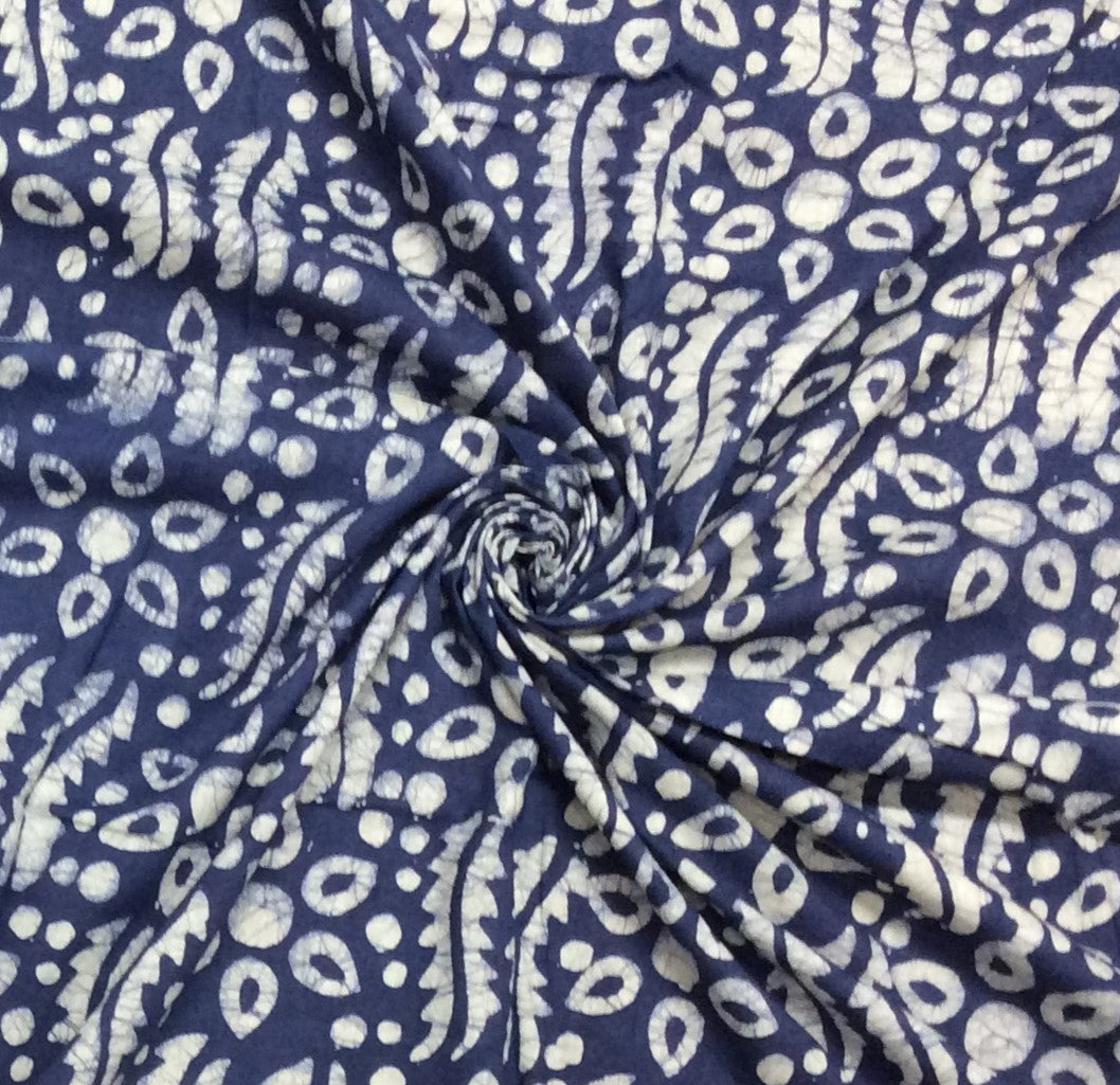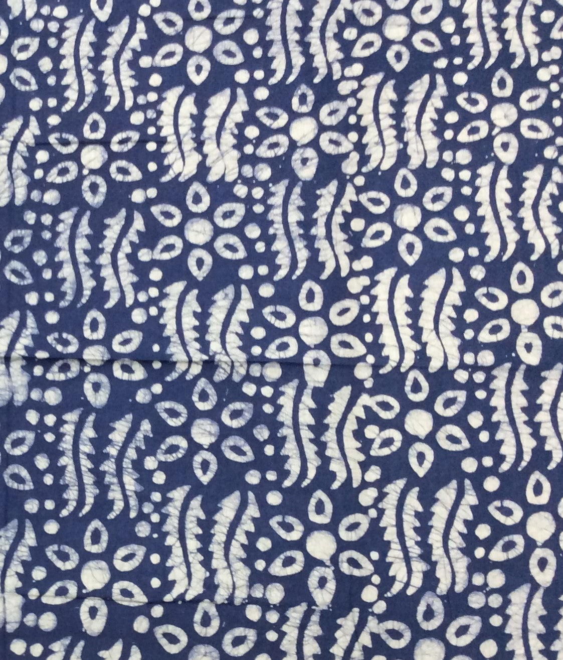 Blue, White Cotton Hand Block Print Fabric (SKU: B-121)