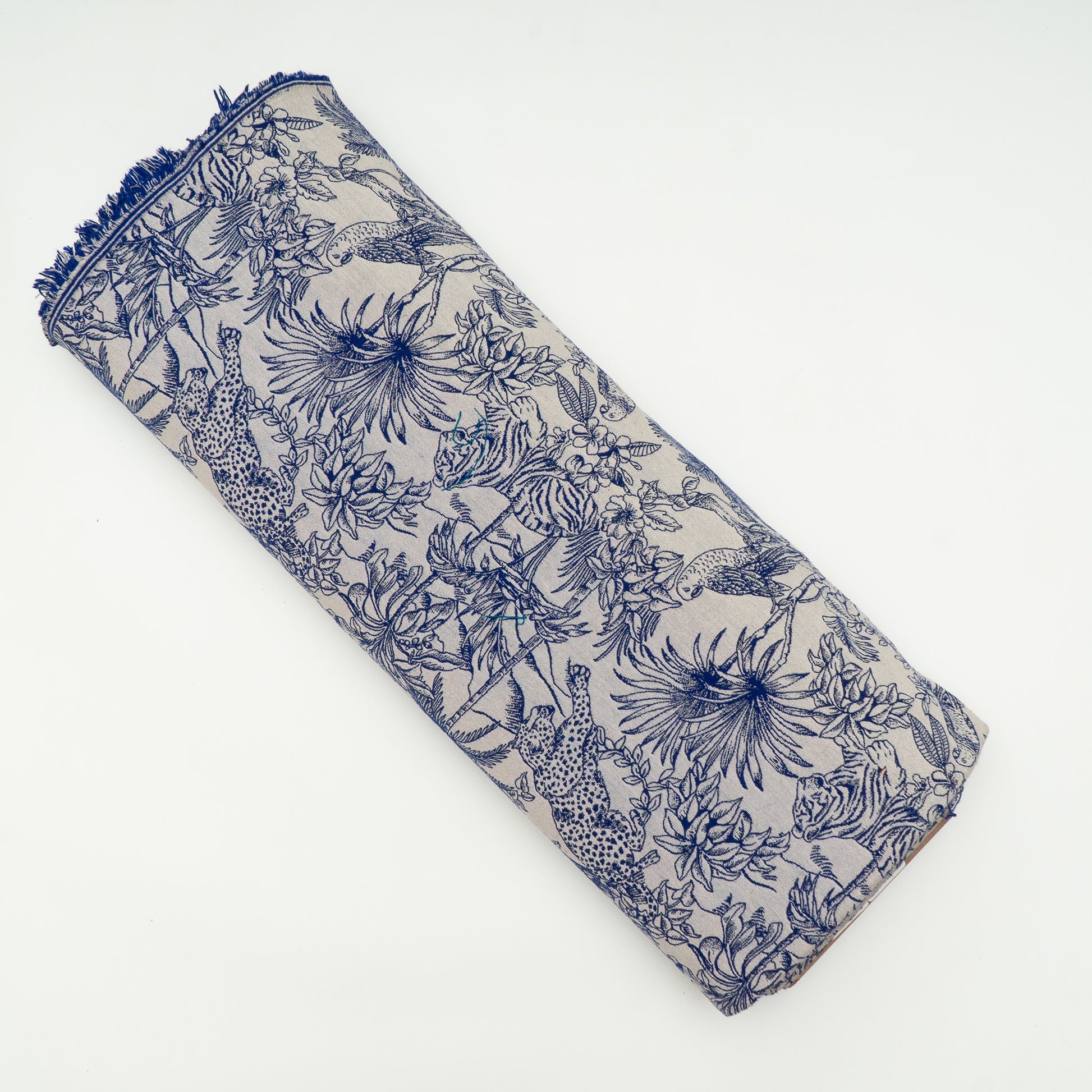Blue & White Tropical Cotton Blend Jacquard ( SKU: JDD-456 )