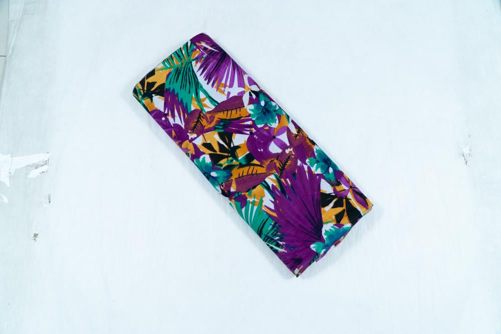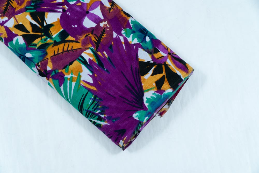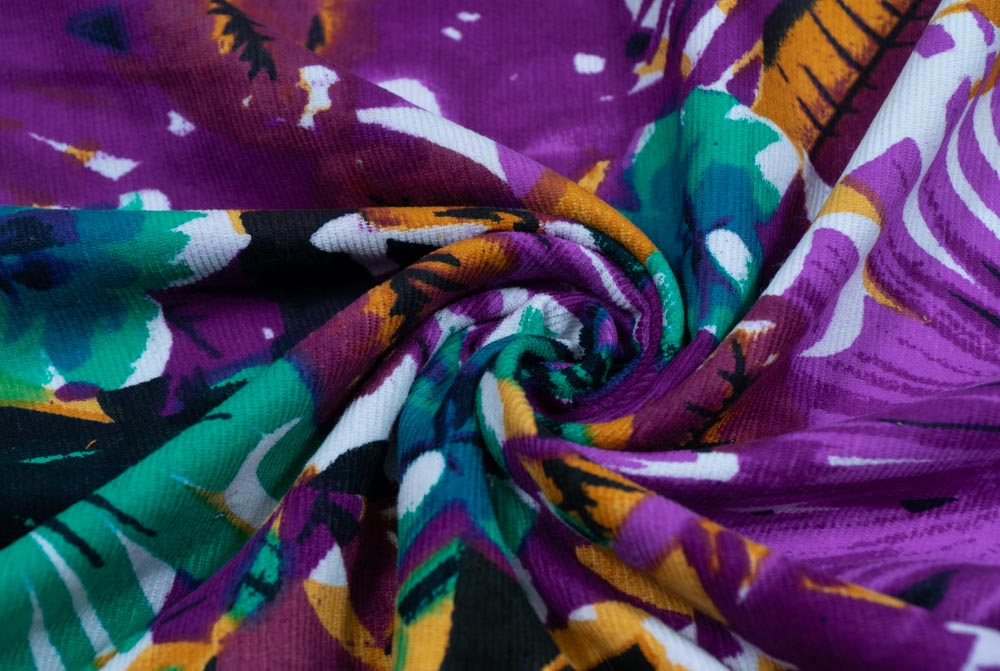 Purple, Green & Yellow Floral Corduroy Thick Cotton Print