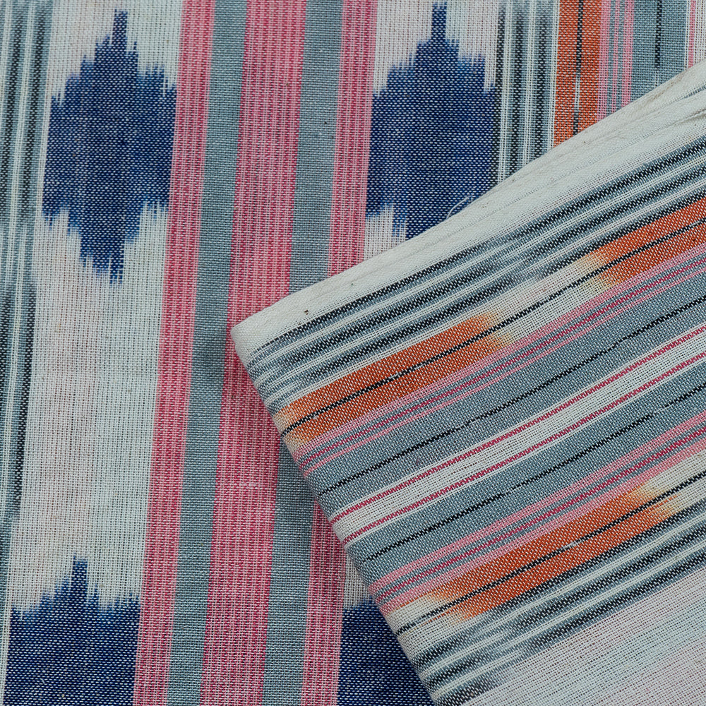 Orange, Pink & Blue Cotton Handloom Ikat (Sku: I-796)