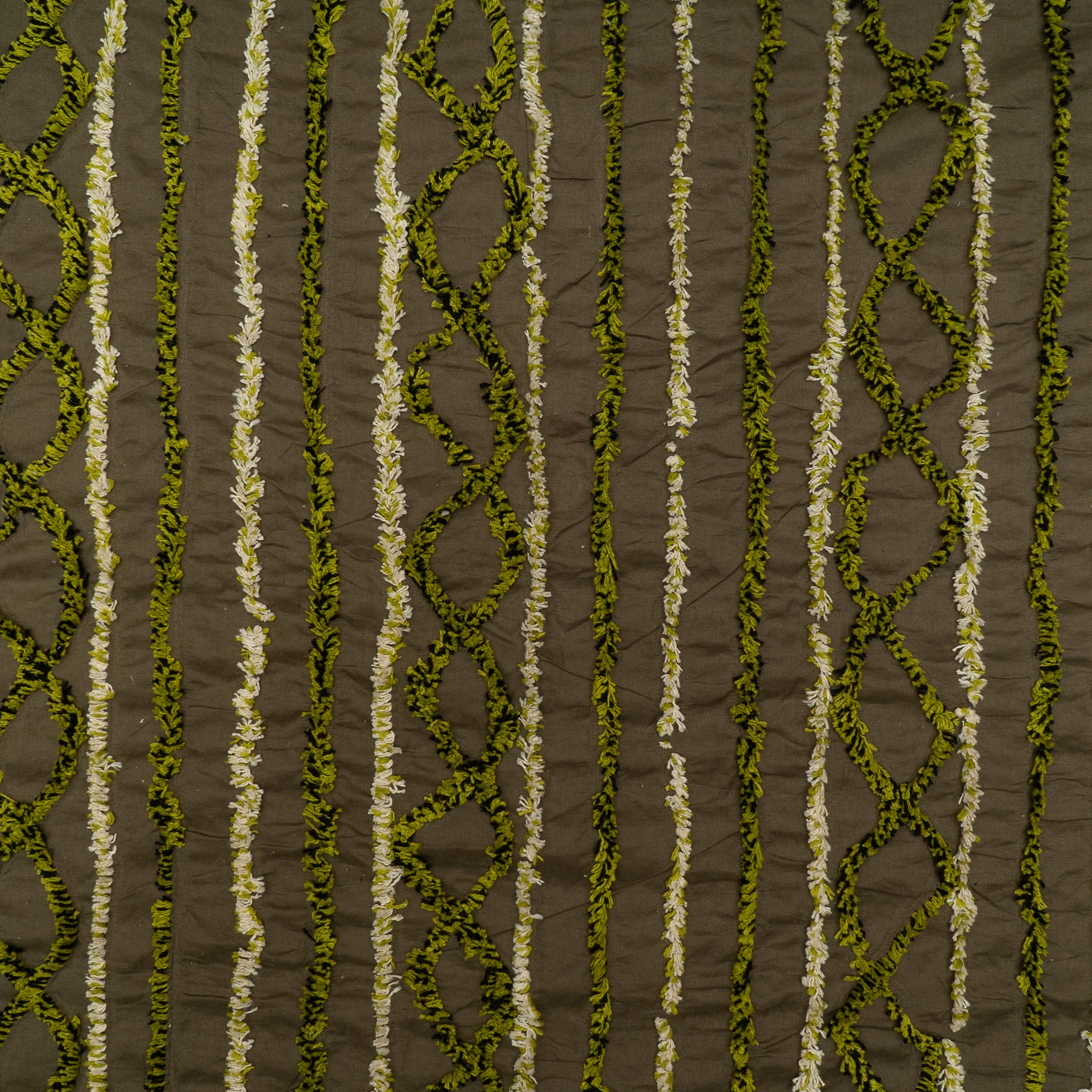 Green & White Tufting on Cotton Cambric (Sku: J-526)
