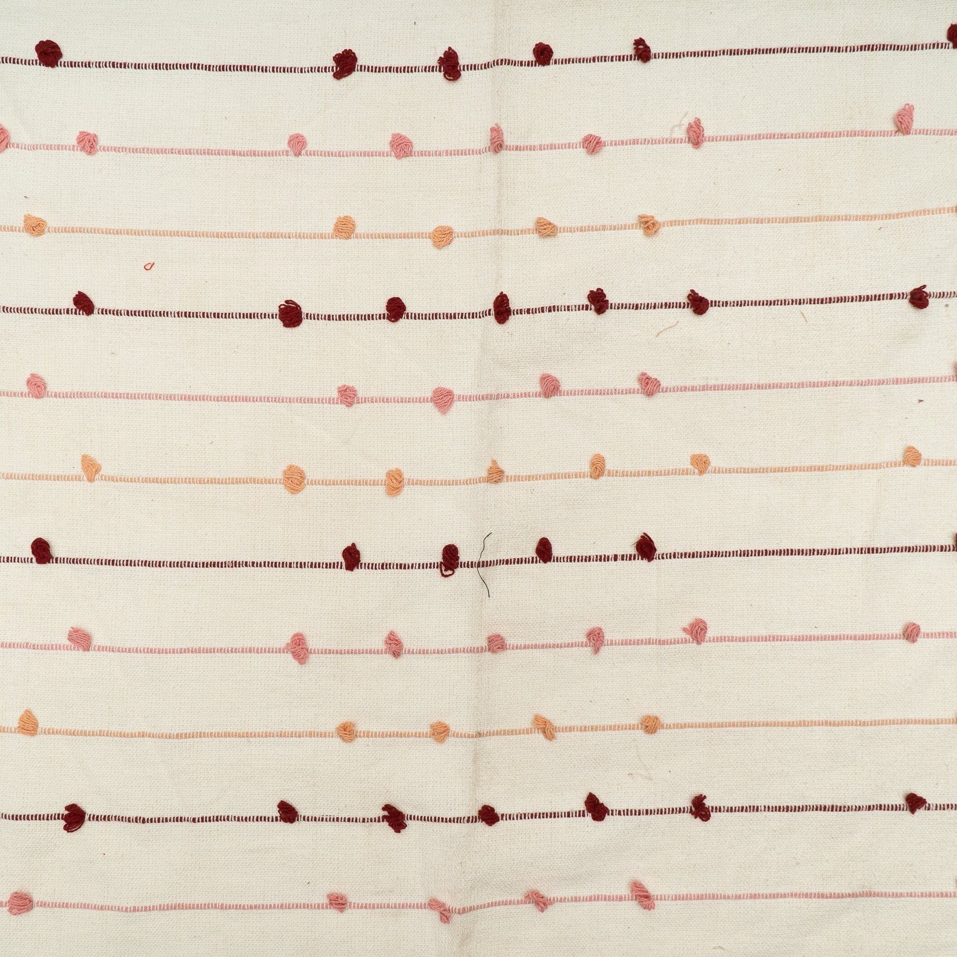 White, Red Pompom Cotton Jacquard Fabric (Sku: JDD-375)