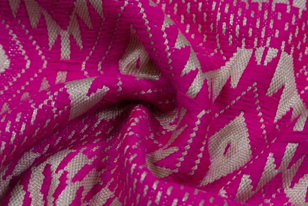 Jacquard refers to a type of fabric with intricate, woven-in patterns, not printed or dyed. This allows for designs like damasks, florals, and geometrics. Jacquard fabrics are versatile and can be made from various materials like Acrylic, Cotton, Wool, and Polyester.