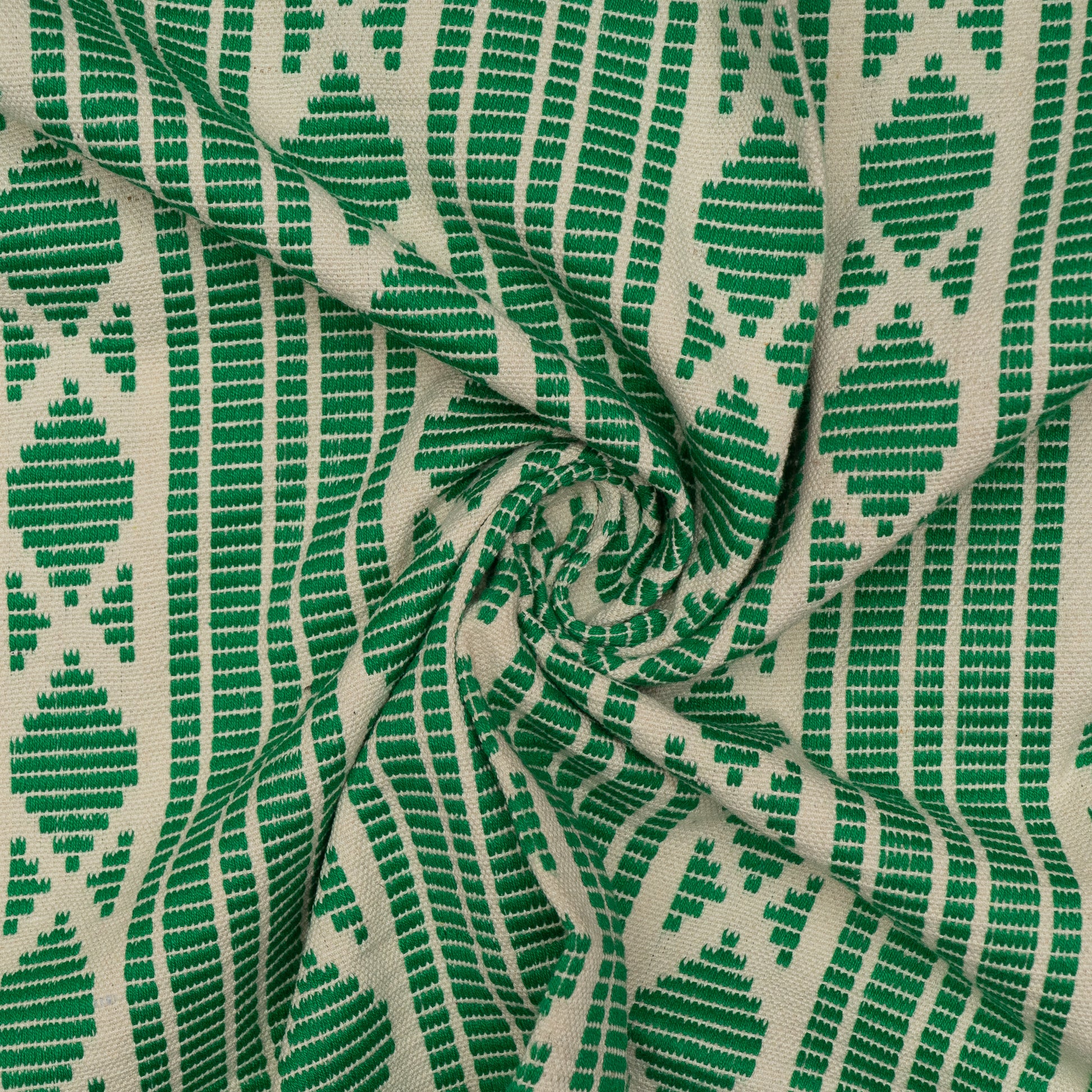 Jacquard refers to a type of fabric with intricate, woven-in patterns, not printed or dyed. This allows for designs like damasks, florals, and geometrics. Jacquard fabrics are versatile and can be made from various materials like Acrylic, Cotton, Wool, and Polyester.