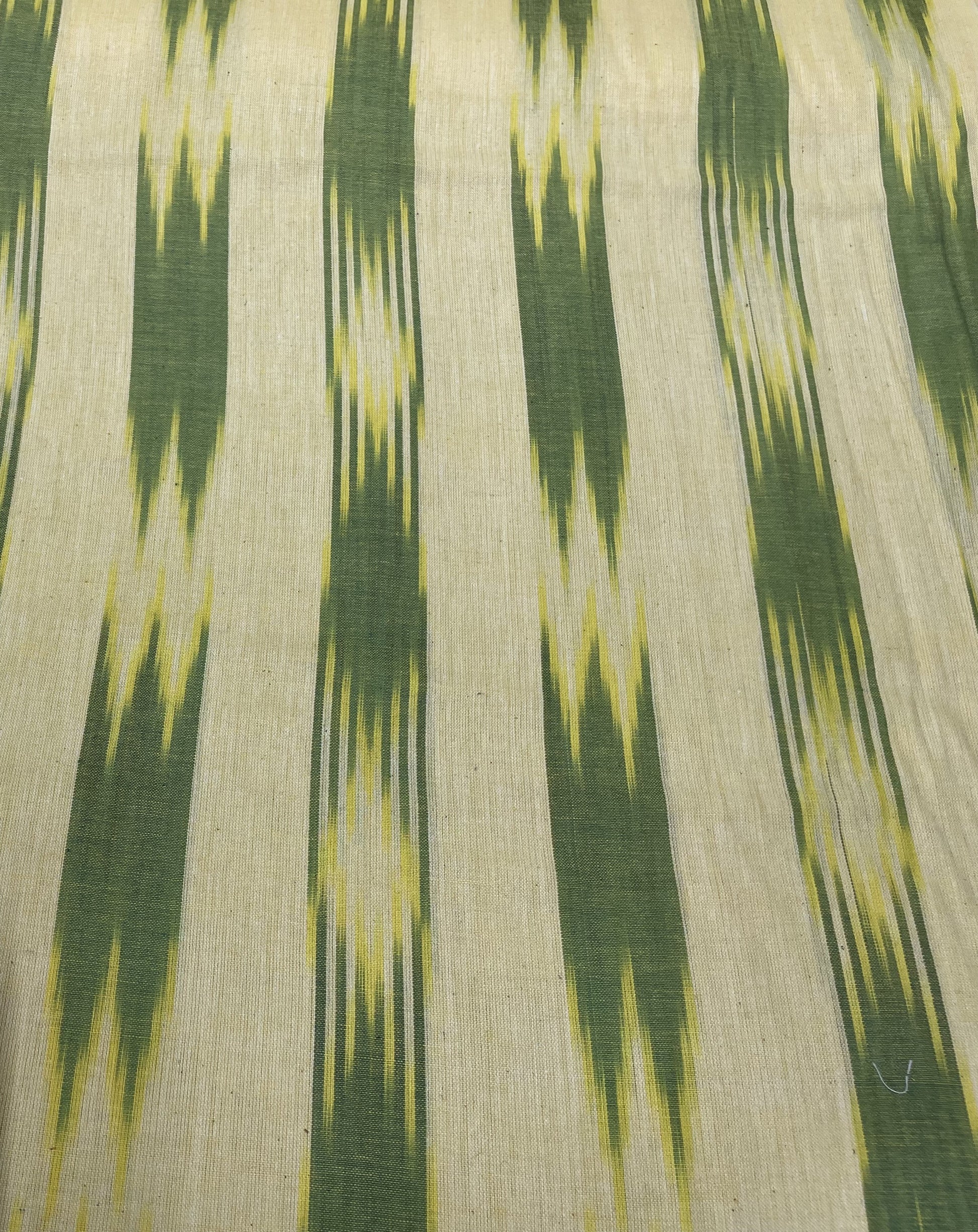 Cream And Green Cotton Handloom Ikat (Sku: I-699)