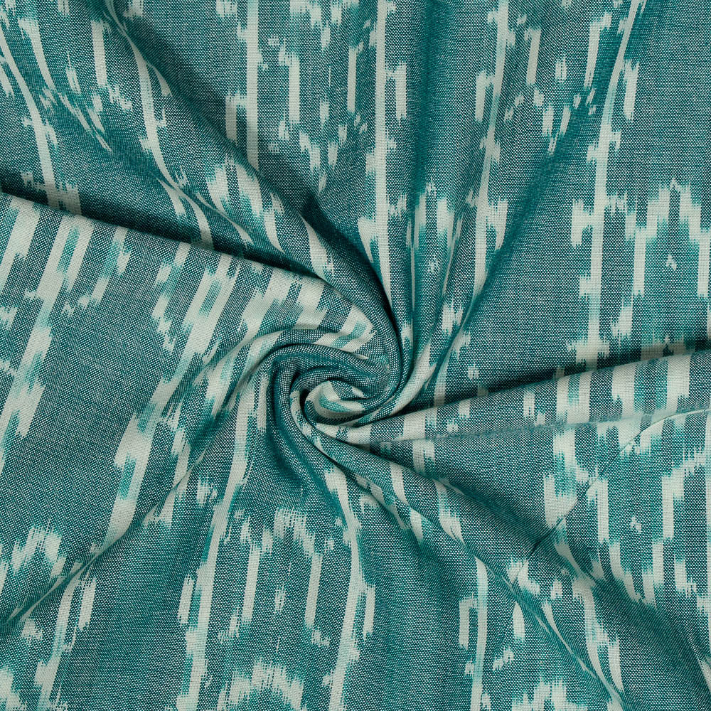 Green & White Fine Quality Cotton Handloom Woven Ikat (Sku: IKK-562)