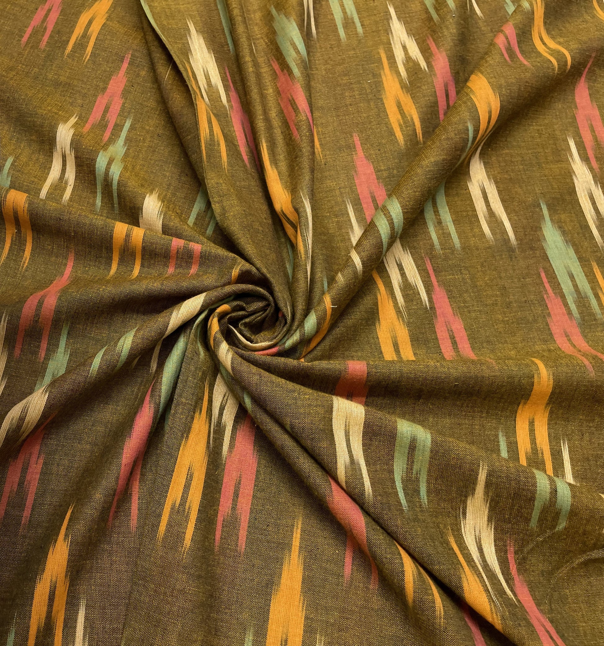 Green And Yellow Cotton Handloom Ikat (Sku: I-321)