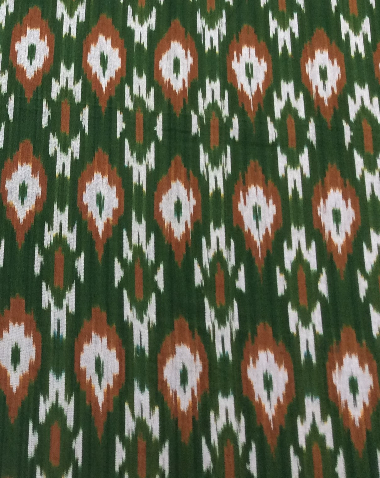 Green & Brown Cotton Woven Handloom Thick Ikat (Width: 44 inch or 112 cm)