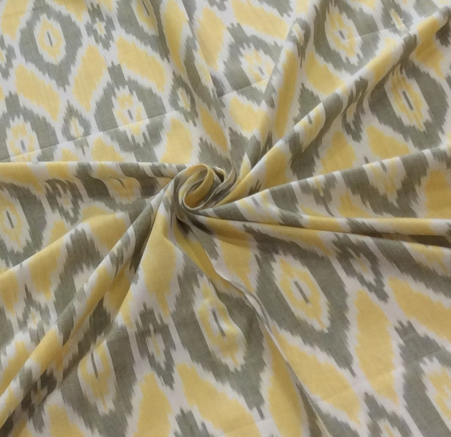 Grey, Lemon Yellow Fine Cotton Handloom Ikat (SKU: IKK-478)
