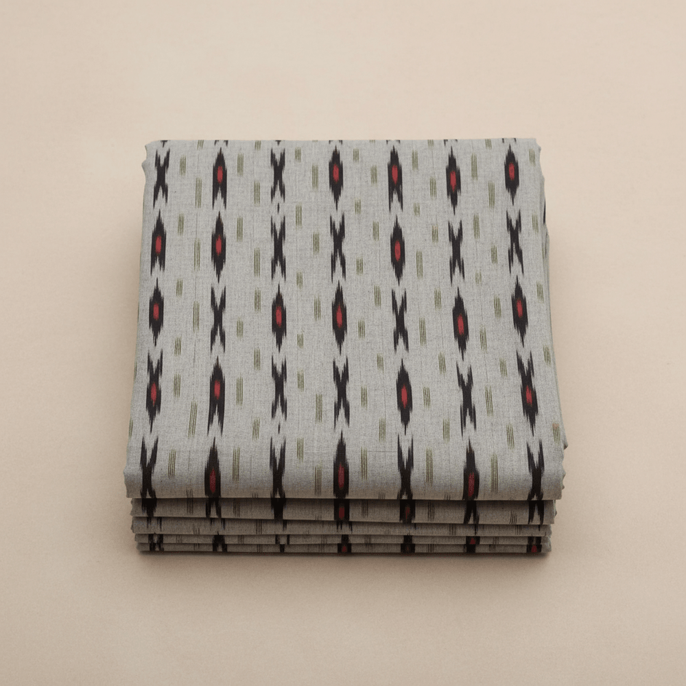 Cotton Ikat, also known as Ikat Cotton Fabric, Ikkat Cotton Fabric, and Handloom Cotton Ikat, is a premium traditional textile created using a special resist-dyeing technique. In this method, cotton yarns are dyed first and then woven, which creates naturally beautiful patterns and motifs.