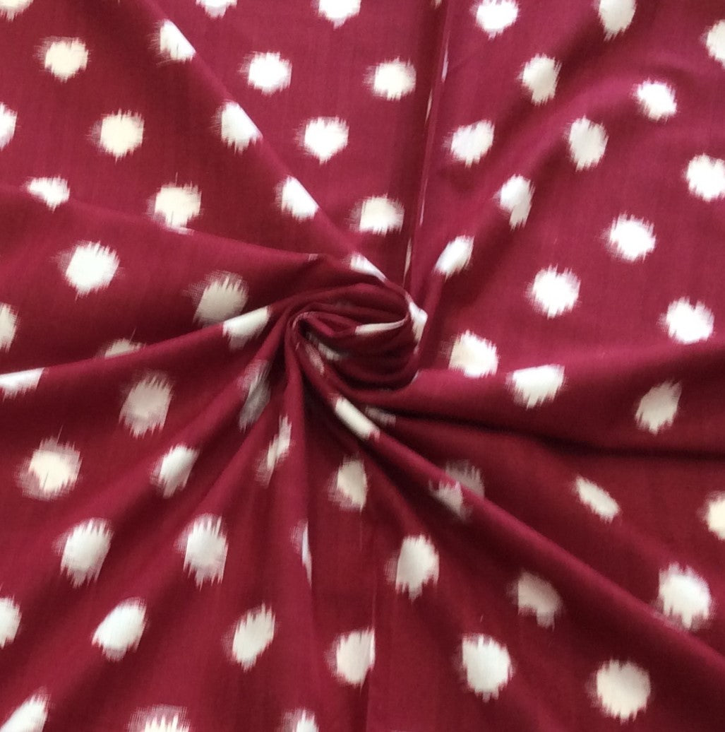 Maroon, White Dot Handloom Fine Quality Cotton Double Ikat (Width: 44 inches or 112 cm)