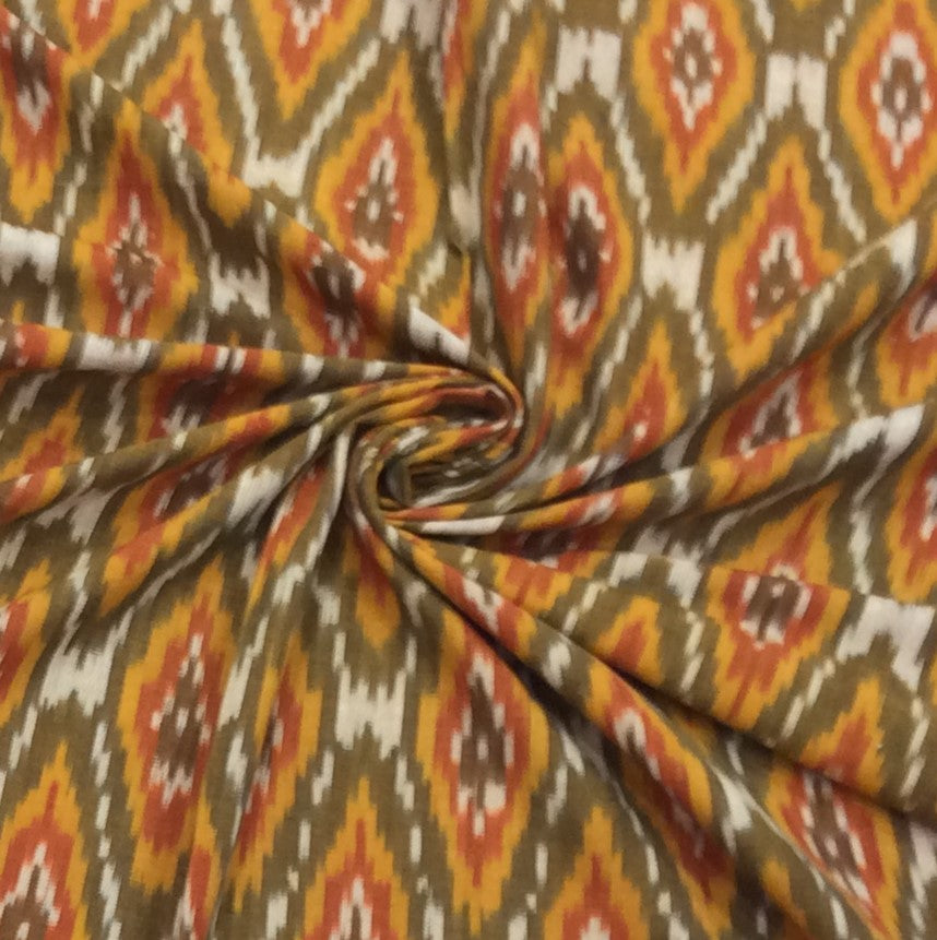 Ikat or Ikkat is a resist dyeing technique where yarn is dyed first, and pattern is made at the time of dyeing followed by weaving at the end which makes this fabric so unique. It is being made by artisans in small towns and villages, hundreds of kilometres away from the city. The inconsistencies in the colour and pattern proves that it is an Authentic Pure Handloom Ikat Woven Fabric.